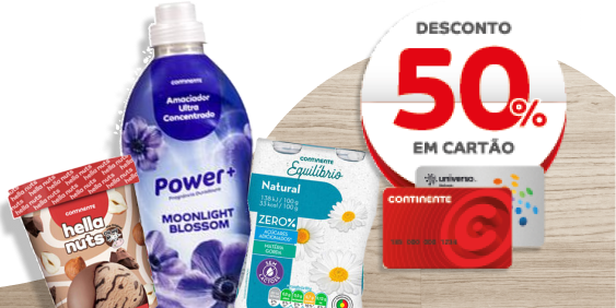 Descubra os produtos Continente e receba 50% de desconto em Cartão Continente na compra de produtos selecionados