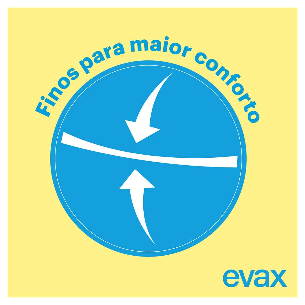 Os pensos higiénicos Evax Fina & Segura são a escolha perfeita para quem procura qualidade e desempenho ao melhor preço, para os dias do período com fluxo normal. Os pensos higiénicos Evax Fina & Segura são finos para um maior conforto e possuem tecnologia que neutraliza o odor menstrual, além de um núcleo absorvente que lhe garante proteção durante todo o dia. Disponíveis com e sem abas.