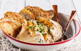 SUGESTÃO DE CONSUMO: Tostas de Chia e alecrim com requeijão; Sapateira rechada com Tostas de pão Saloio.