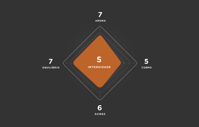 Perfil sensorial - Delta Q Qonvictus resulta num expresso equilibrado e encorpado, rico em notas de caramelo e chocolate, e uma acidez delicada.