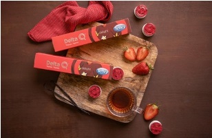 Delta Q Delight – aromático e delicioso Quando as propriedades antioxidantes da planta africana rooibos se associam aos aromas do morango e da baunilha, o resultado é uma tisana deliciosa e sem cafeína. Delta Q Delight é a bebida perfeita para apreciar em qualquer momento do dia.