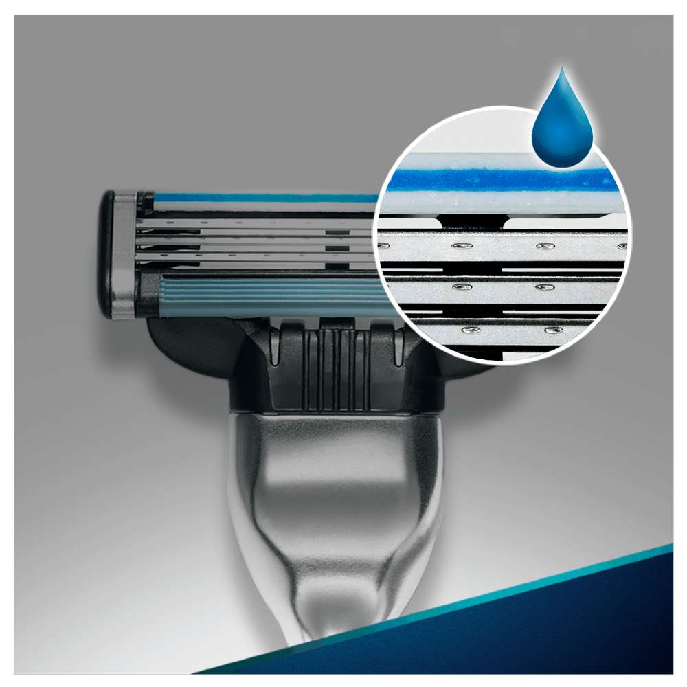 - Duas vezes mais microtensores protetores da pele (vs. a lâmina descartável Gillette Blue3), para um barbear suave;