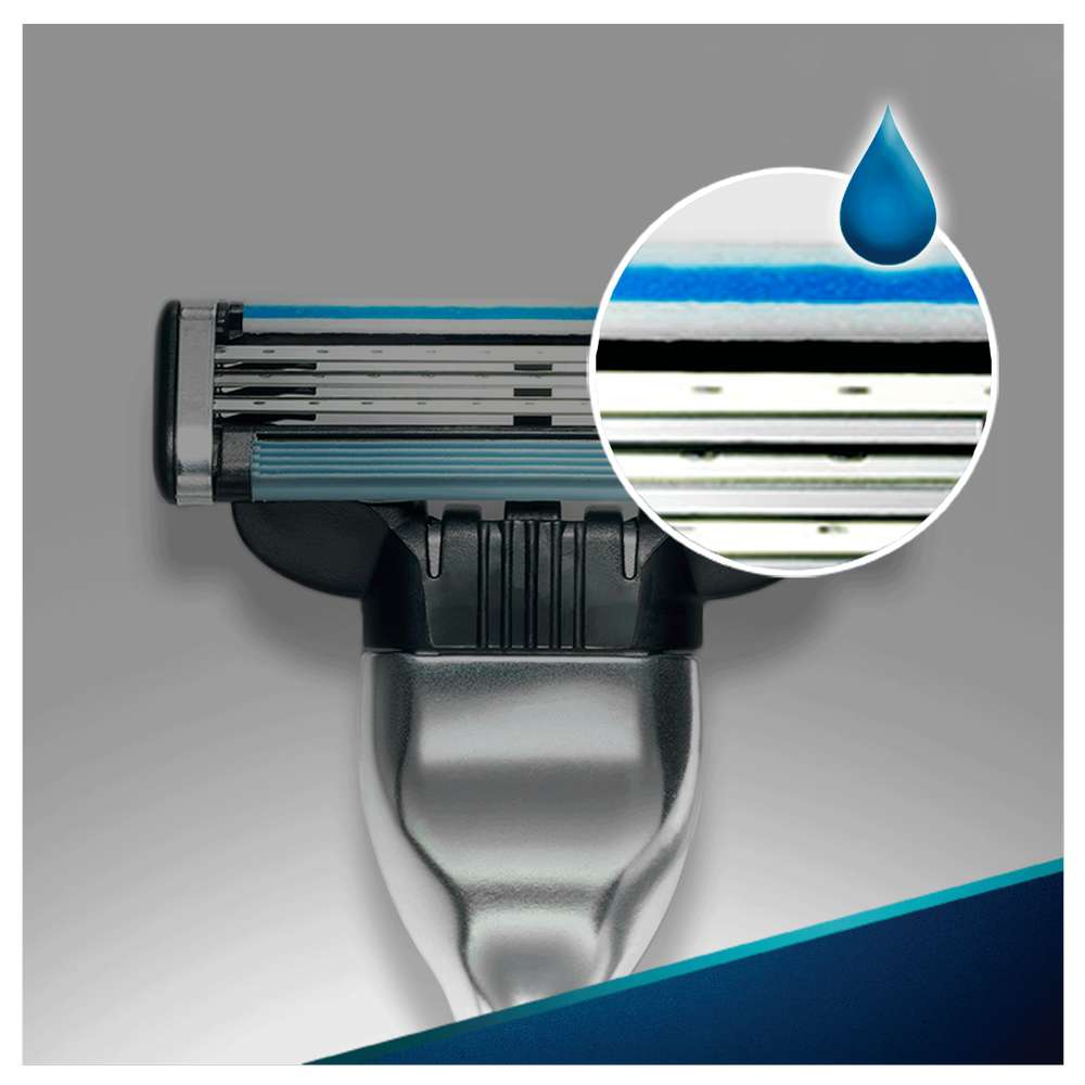 - Esta lâmina Mach3 apresenta lâminas DuraComfort para um conforto duradouro;