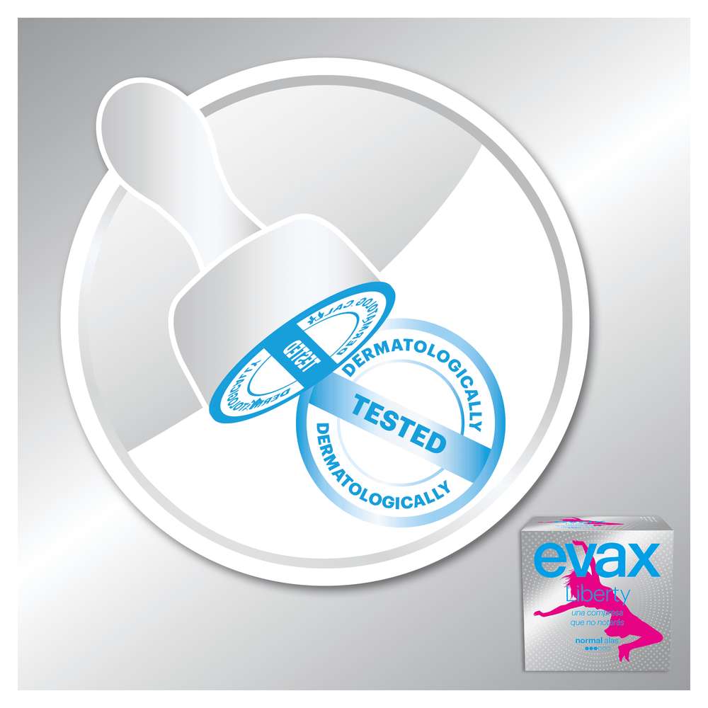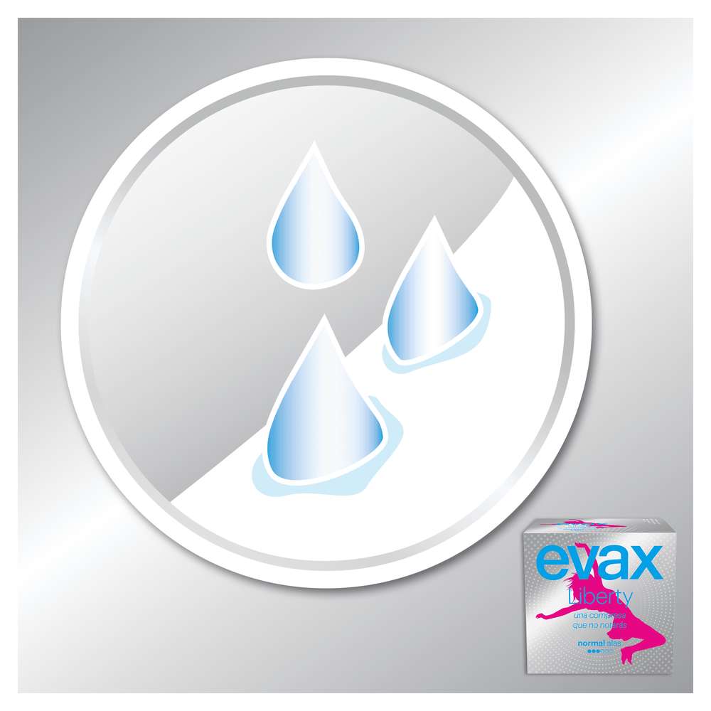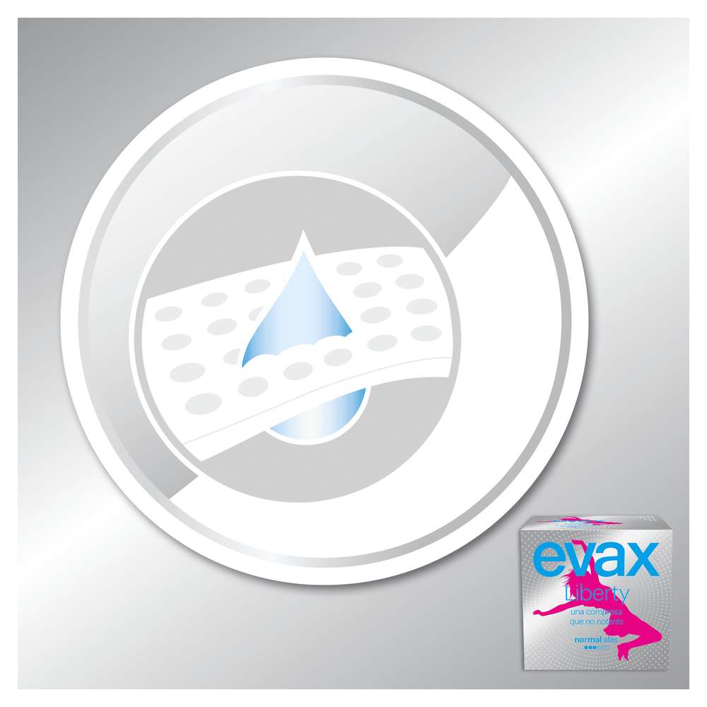 São os pensos higiénicos mais absorventes da Evax. Nem vais notar que os estás a usar. Feitos com Flexicel, um material inovador que se adapta perfeitamente ao teu corpo, os pensos Evax Liberty oferecem flexibilidade e absorção extraordinárias para os dias de fluxo normal. Disponível em três níveis de absorção: Normal (com e sem abas), Super e Noite para os dias de fluxo abundante e muito abundante.