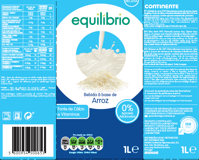 Bebida de Arroz Continente Equilíbrio emb. 4 x 1 lt