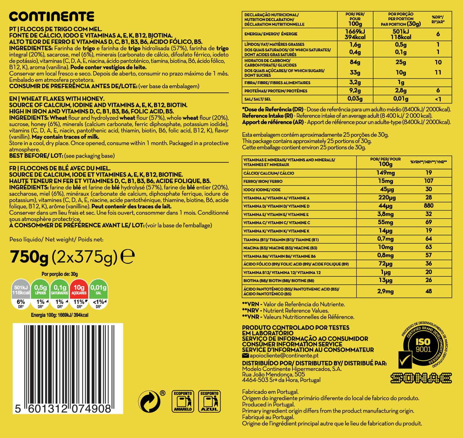 Os produtos alimentares estão sujeitos a constantes alterações das quais o consumidor deverá estar sempre informado. Modelo Continente Hipermercados S.A. não é responsável por eventuais divergências e/ou modificações relacionadas com a informação sobre os produtos presentes no nosso website, facultada pelo fornecedor/fabricante, e a que figura nos rótulos dos mesmos.