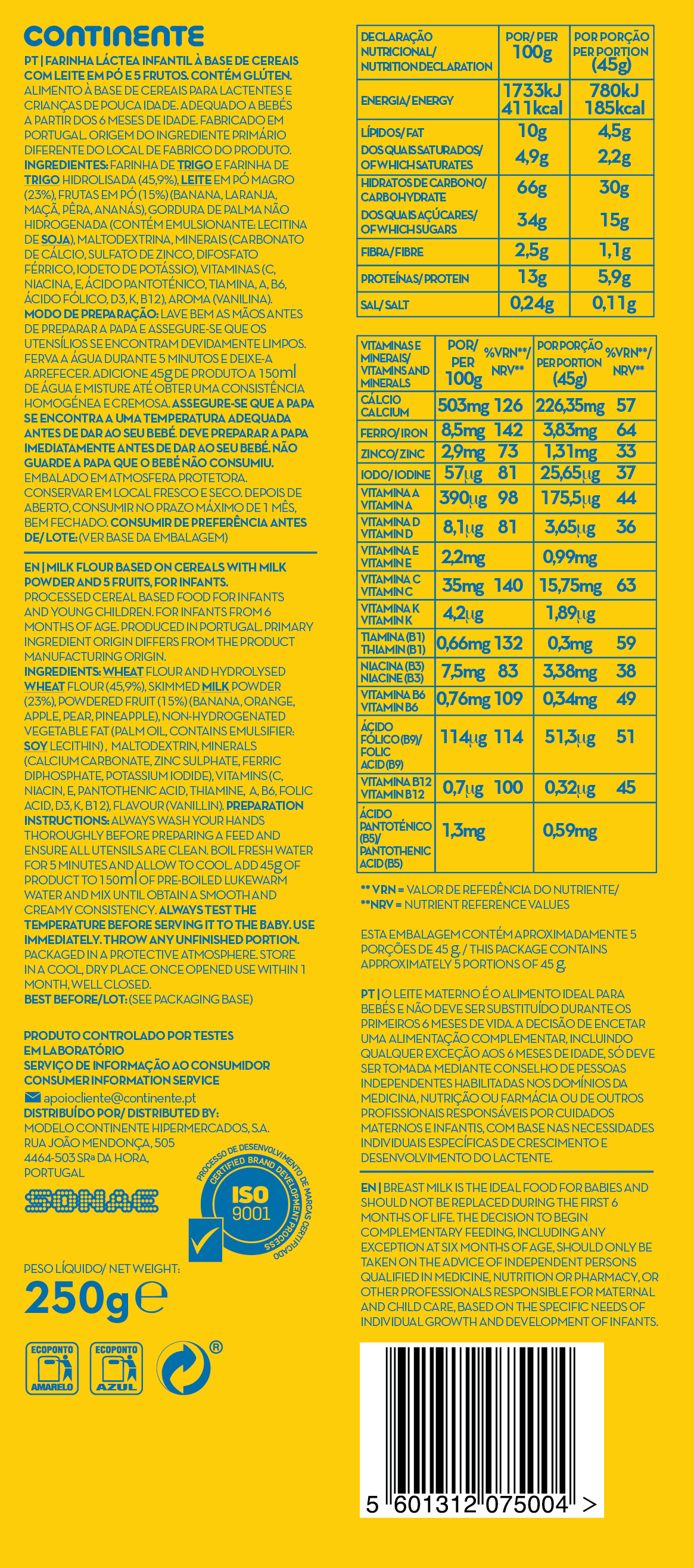 Farinha Láctea 5 Frutos Continente emb. 250 gr