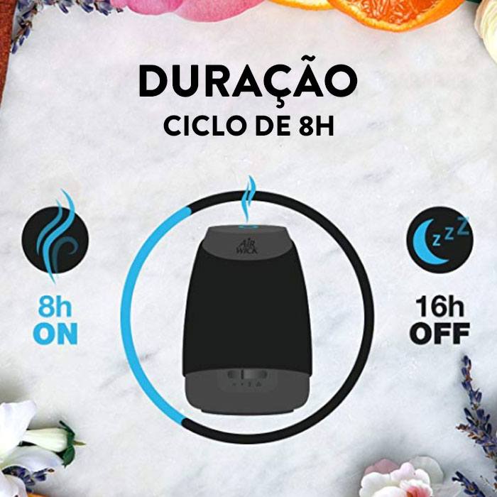 - Longa duração: até 45 dias de fragrância por recarga, no modo de baixa intensidade;