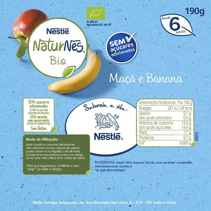 NATURNES Bio Maçã Banana preserva toda a riqueza nutricional da fruta, não tem adição de açúcares, contendo apenas os açúcares naturalmente presentes, oferecendo uma textura extremamente suave e um sabor delicioso para satisfazer os paladares mais exigentes!